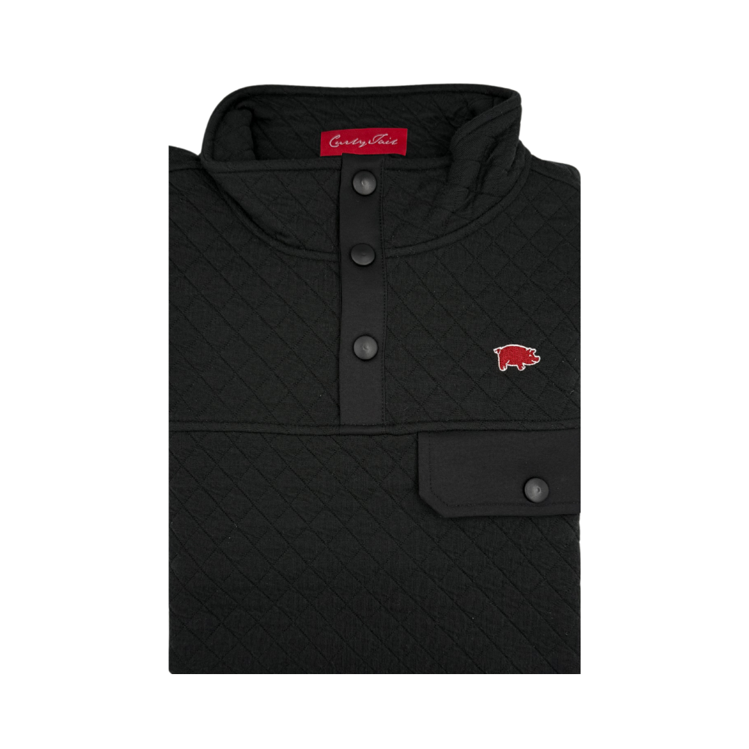 Description Layer up in Razorback style with this quilted snap pullover. Designed with lightweight insulation and a smooth, soft hand feel, it delivers warmth without the bulk—perfect for crisp mornings or cool game nights. The classic quilted pattern pairs with a snap-button placket for easy wear and timeless appeal, while stretch binding at the cuffs and hem ensures a secure, comfortable fit. Finished with subtle Curly Tail detailing for a polished team look.